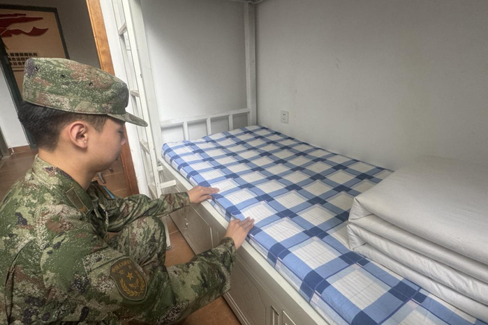 除队列动作外,口令指挥、内务整理也贯穿集训全程。正午阳光最烈时,教官们一遍遍铿锵有力地练习口号,要求声音洪亮、节奏清晰,即便嗓子沙哑也绝不降低标准。宿舍内,他们比拼叠“豆腐块”的技艺,床单铺平无褶皱,物品摆放成直线,每个细微处都透着严谨。
