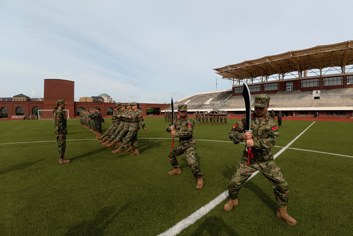清晨六点半,阳光刚漫过操场边缘,学生教官们已身着迷彩服列成整齐队列。“稍息,立正,跨立!”随着一声声口令,摆臂高度、踢腿角度、转身速度皆精准如一,每个普通动作都要经反复打磨。作为新生入学军训的第一任老师,他们必须先把自己“练到过硬”。