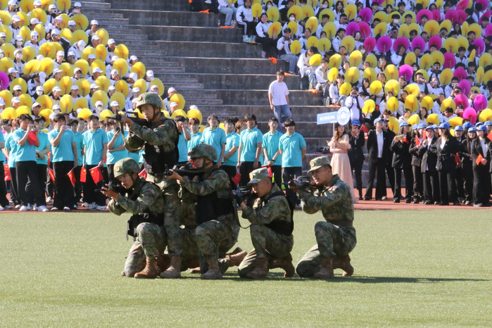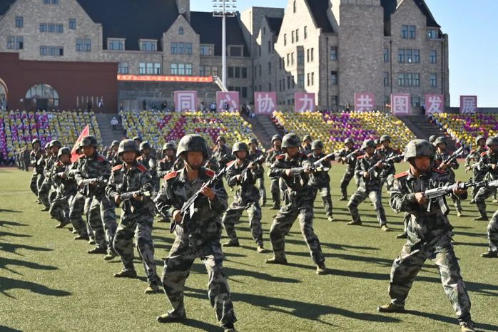 军训汇报表演中的长建学子,英姿飒爽、朝气蓬勃。刺杀操、匕首操、拳术、旗语、刀术、花枪等轮番上阵,动作干净利落、英姿飒爽,传递出永不退缩、勇往直前的必胜信念。军训教官们的压轴表演更是将现场气氛推向高潮,展现了退役军人过硬的本色与担当。