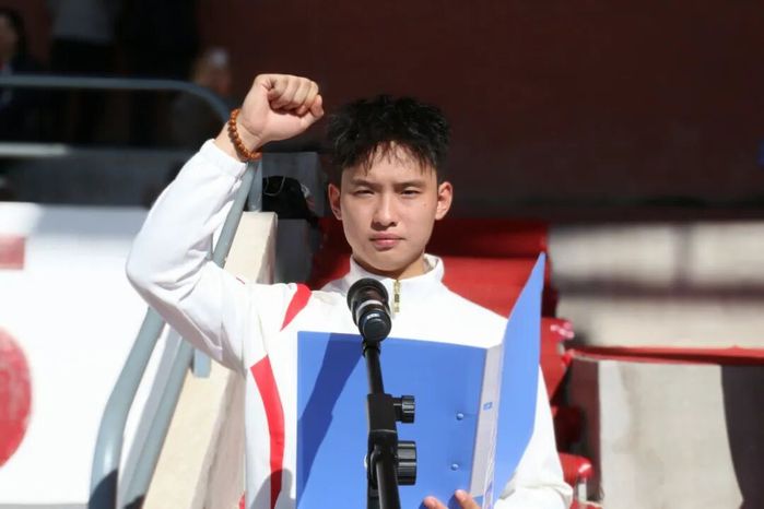 典礼仪式上,城建学院于博同学作为新生代表发言,她以饱满的热情表达了2025级同学们对新旅程的憧憬和立志成才的决心。