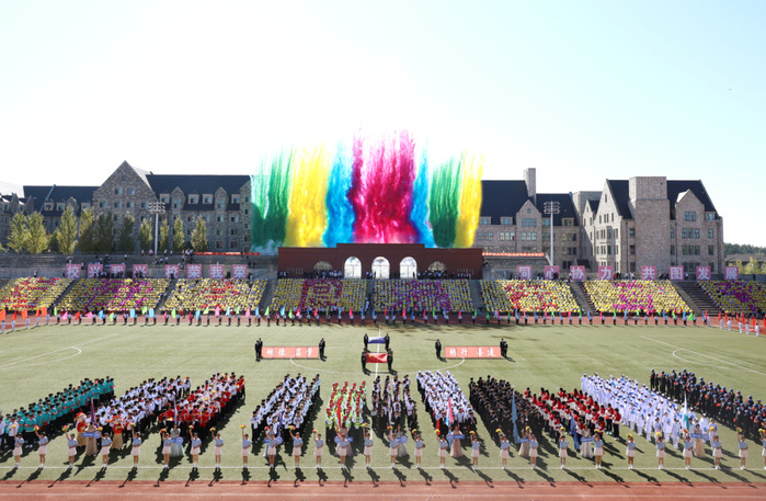 在师生们热烈的掌声中,任玉珊宣布:“长春建筑学院2025年秋季田径运动会,开幕!”话音落下,彩色烟花腾空绽放,礼炮轰鸣、鼓乐激昂,全场欢呼如潮,比赛正式拉开帷幕。