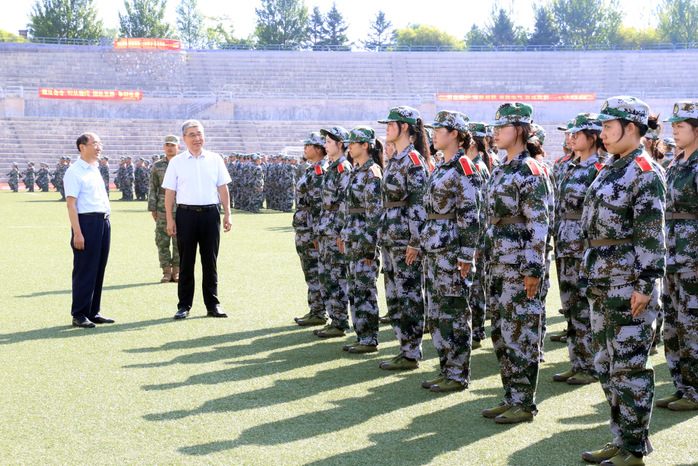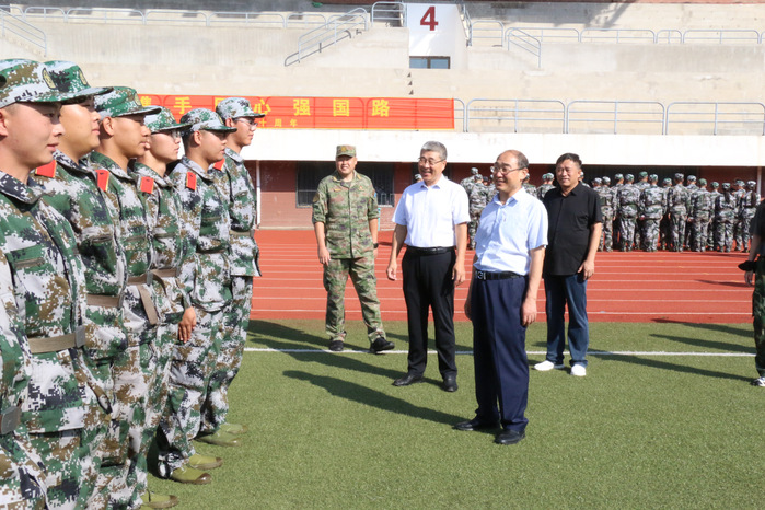 9月5日上午,学校校长任玉珊、党委副书记张冀男带领相关部门负责人前往军训训练场,看望慰问2025级新生及承训教官。