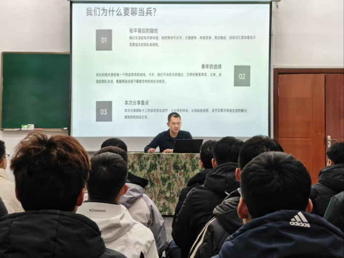 为深入学习贯彻习近平总书记关于国防和军队建设的重要指示精神,切实增强青年学生国防观念,长春建筑学院国防聚志训练团于11月19日在团部活动室组织开展国防政治思想教育活动。本次活动以淬炼成钢担使命 青春聚力护家国为主题,特邀优秀退役大学生士兵付琦林同志担任主讲。
